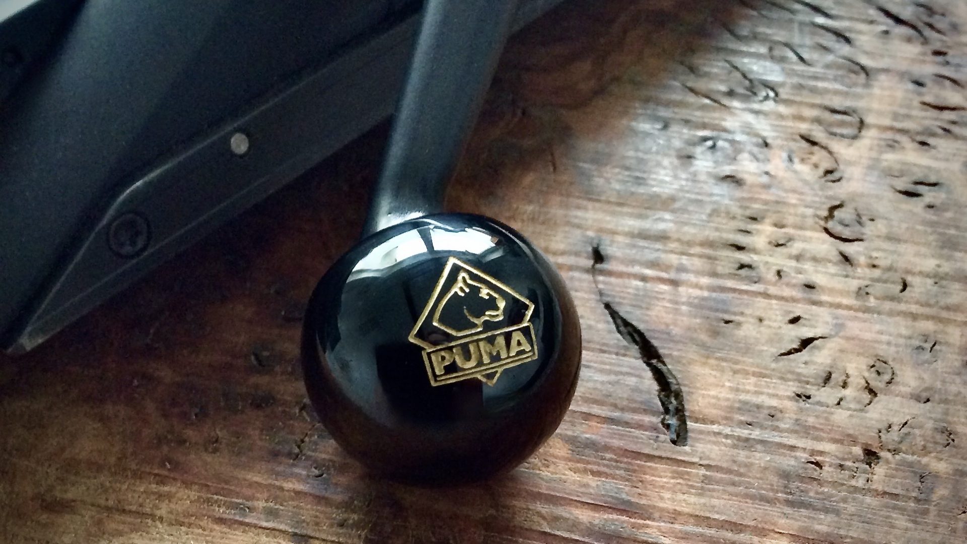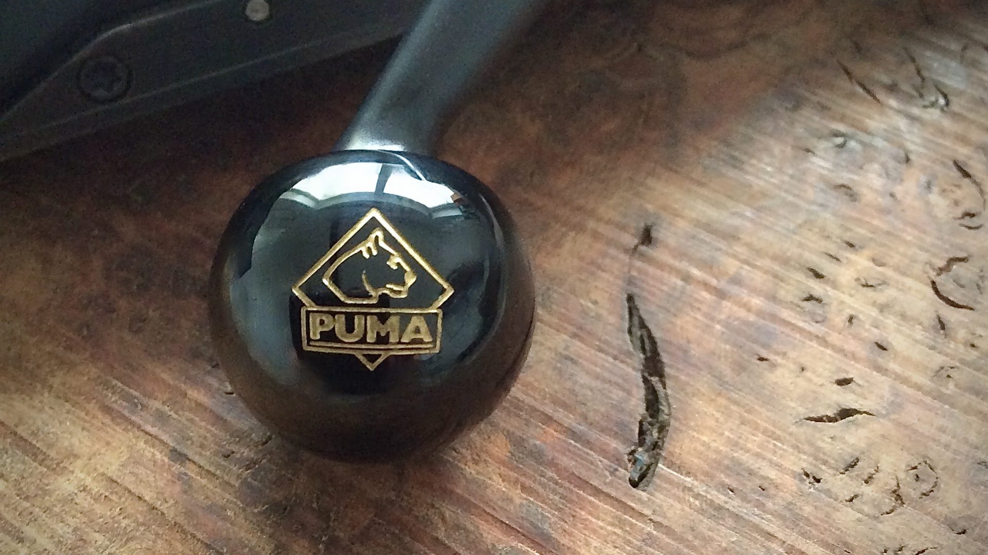 Das Logo des Jagdmesserhersteller – Puma – ist in eine  25mm große Onyxkugel eingraviert.