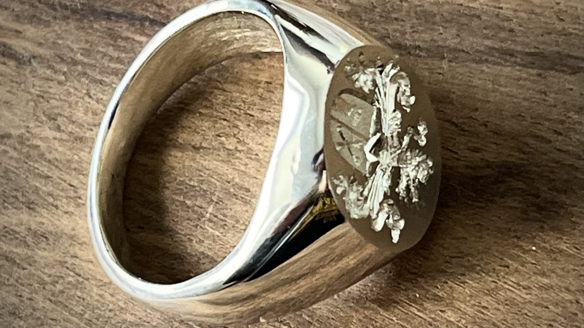 Monogrammring handgraviert Handgravierter Monogrammring in massiver Ausführung. Es sind alle Gravurwünsche umsetzbar.